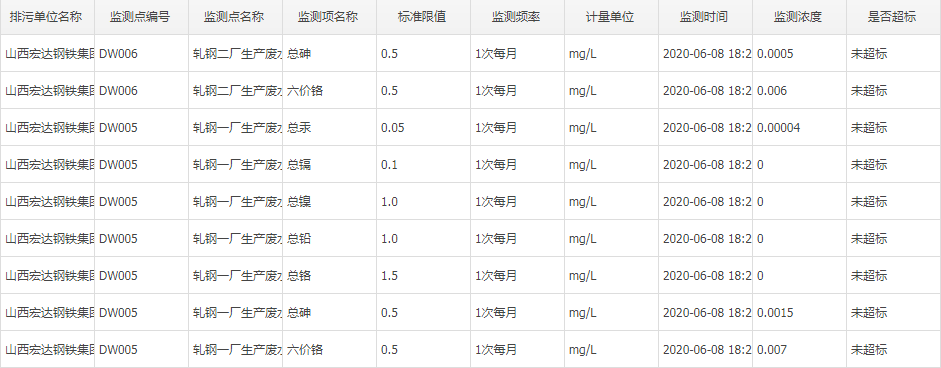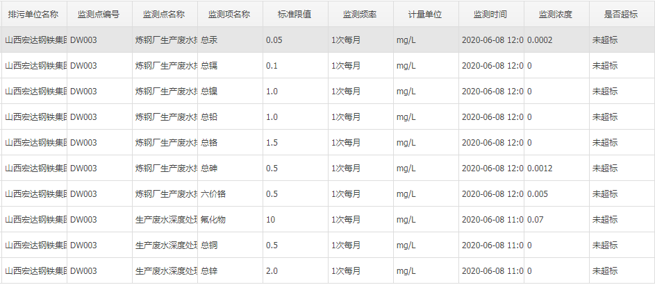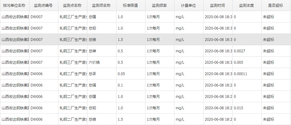 2020年六月份自行監(jiān)測數據
