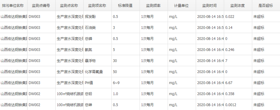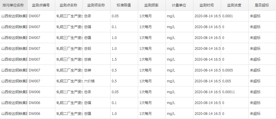 2020年八月份自行監(jiān)測數(shù)據(jù)